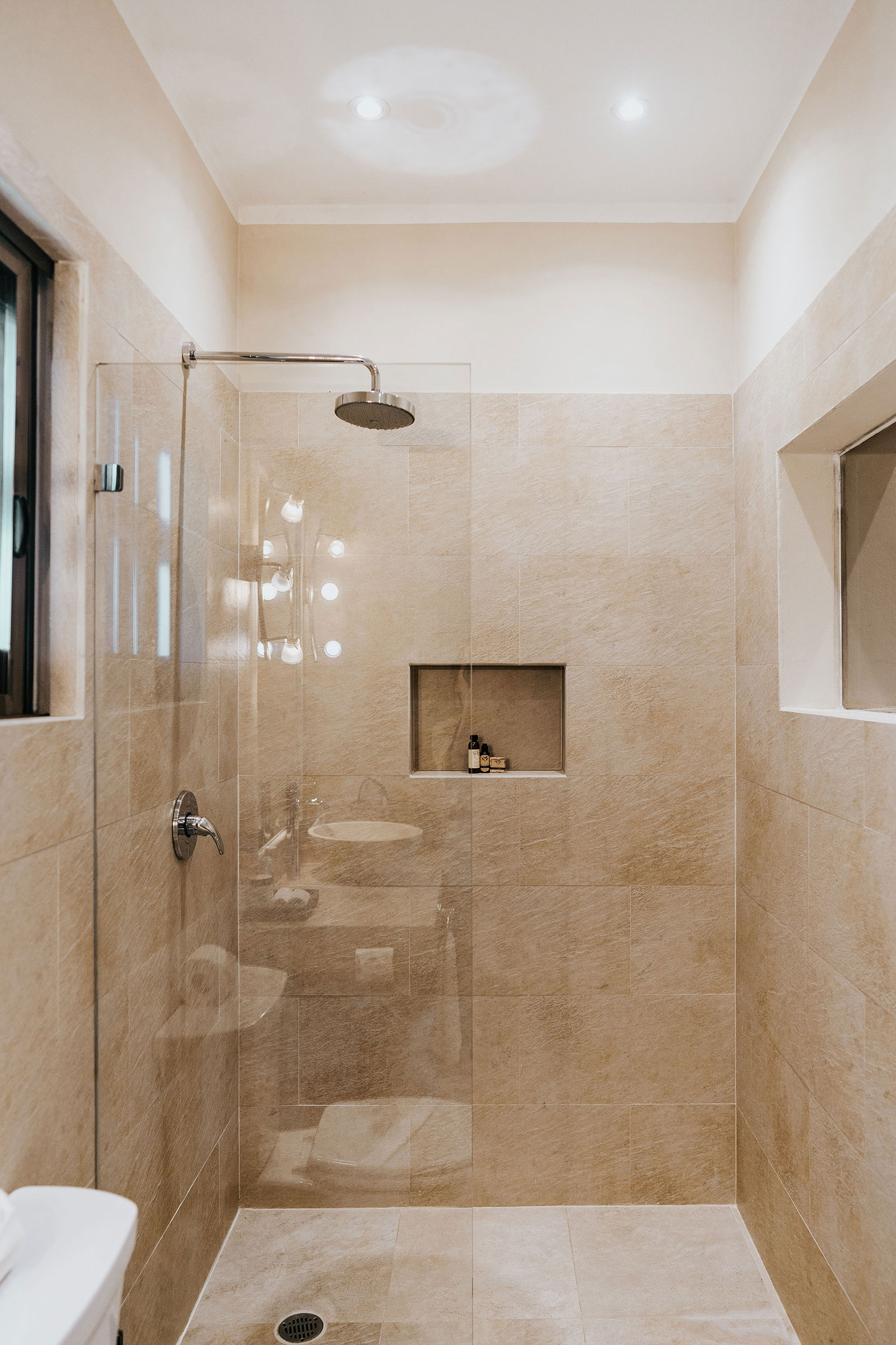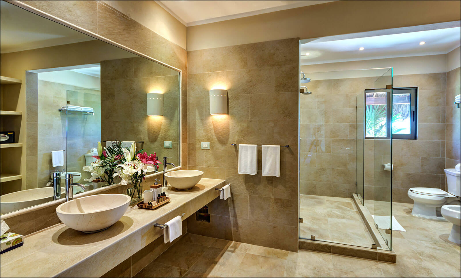 Our villa has 6 ocean-view bedrooms with ensuite bathrooms and private terraces facing the ocean. 2 fully equipped kitchens, 2 interior dining areas and 2 elegant living rooms. There is 1 half-bathroom in the common area.