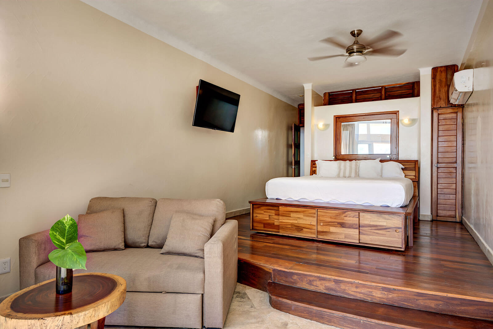 - King size bed, Air conditioning, Ceiling fan, Ensuite bathroom with shower, Safety box, Toiletries, TV