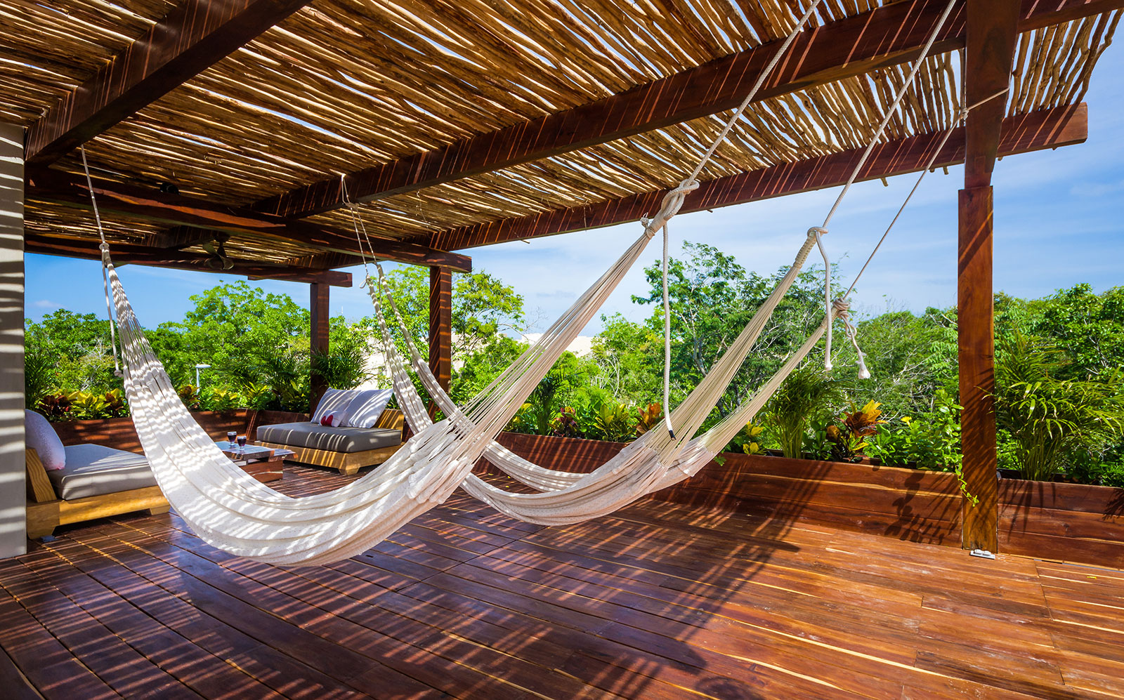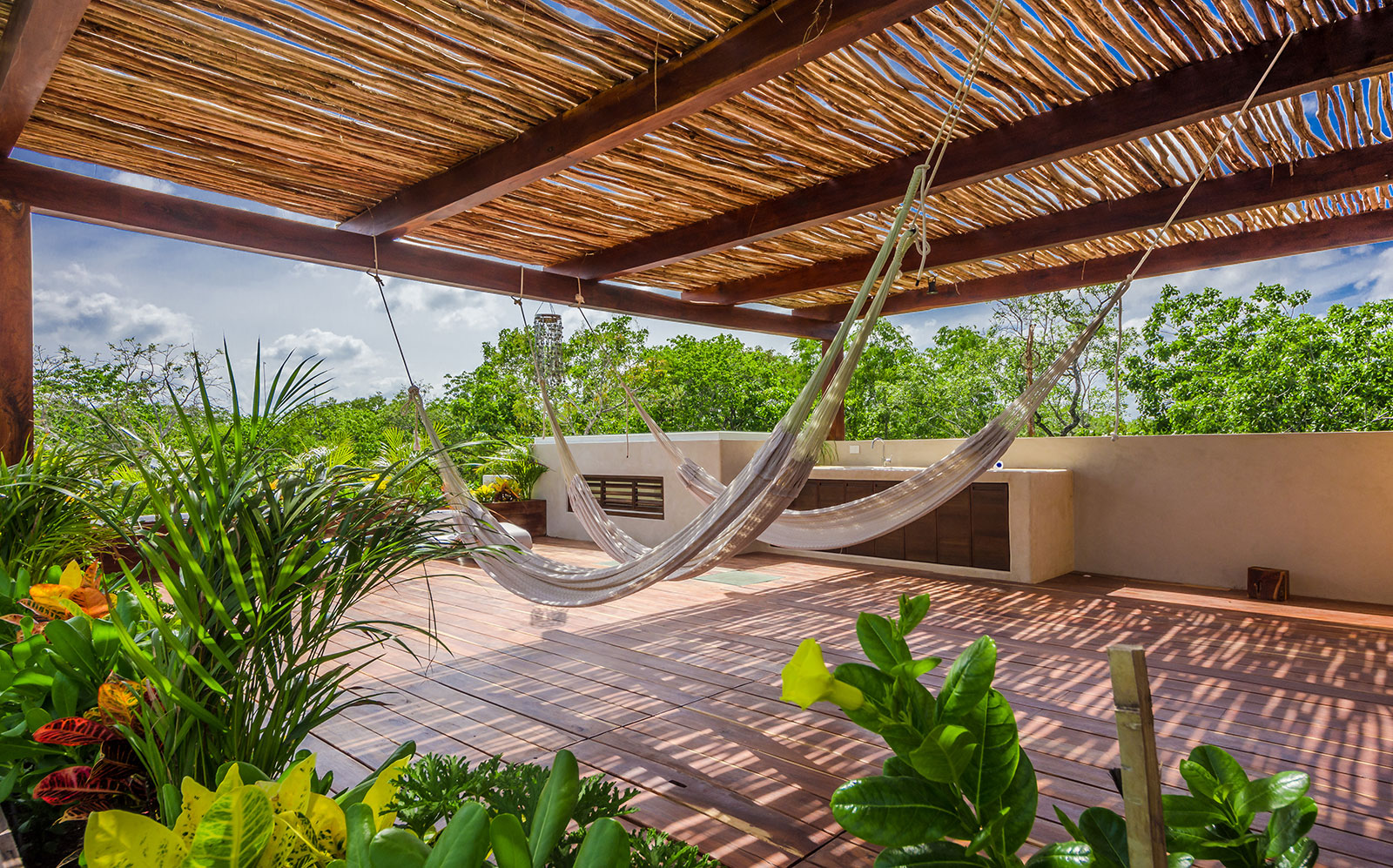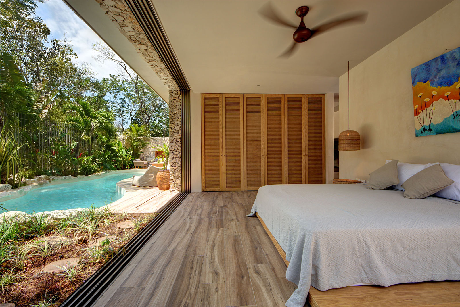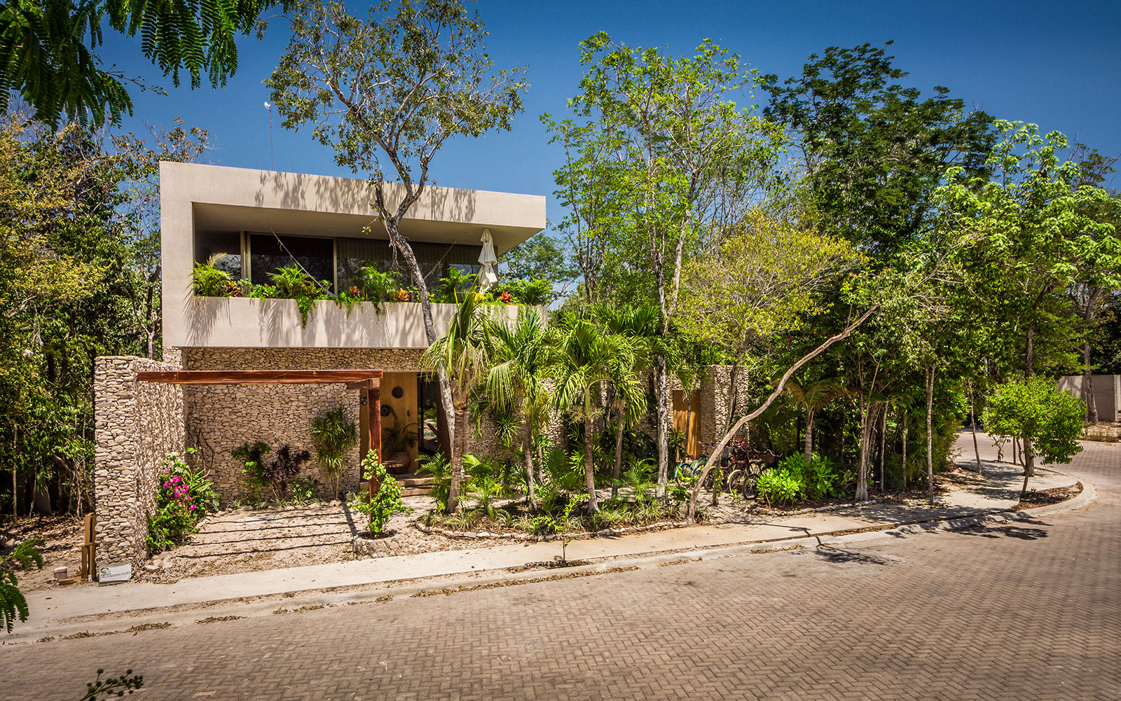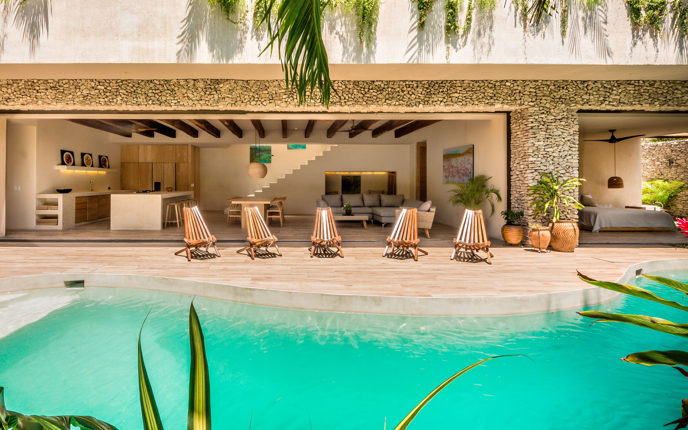 Designed by Co-lab design, based in Tulum, this home showcases the ultimate in tropical living. With long expanses of wide open space, a beautiful lap pool, and a gorgeous rooftop patio, it has all the features you could want in a luxury home.