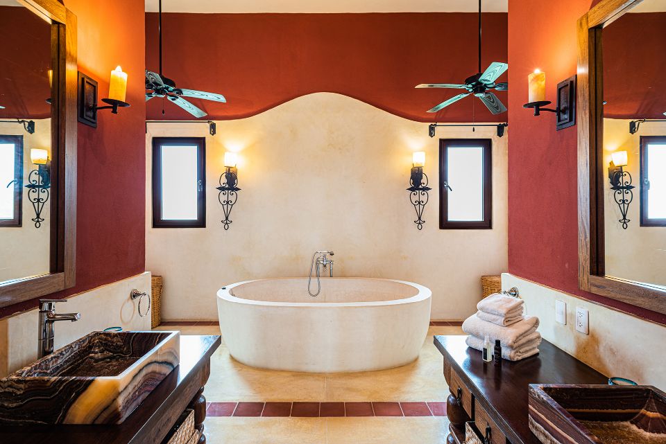 As you enter the main villa you will be mesmerized by the stunning views of the ocean and the enchanting courtyard. The main level has 2 bedrooms with en suite bathroom. The beautiful gourmet kitchen is adorned with colorful Talavera tiles. Our gourmet chefs will delight your palate with tempting dishes. The ocean-front living room with bar is wonderful, you will truly feel like you are sitting right on the beach. The butler/bartender will mix your favorite cocktails!