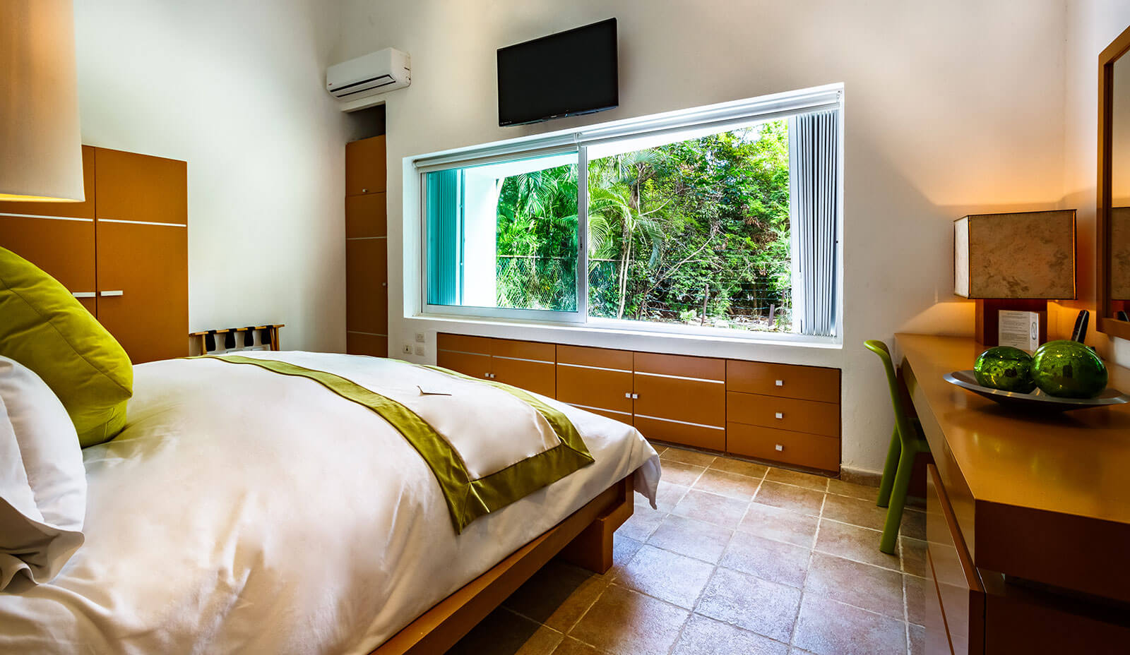 - King size bed, Air conditioning, Ensuite bathroom with shower, Safety box, Telephone, TV